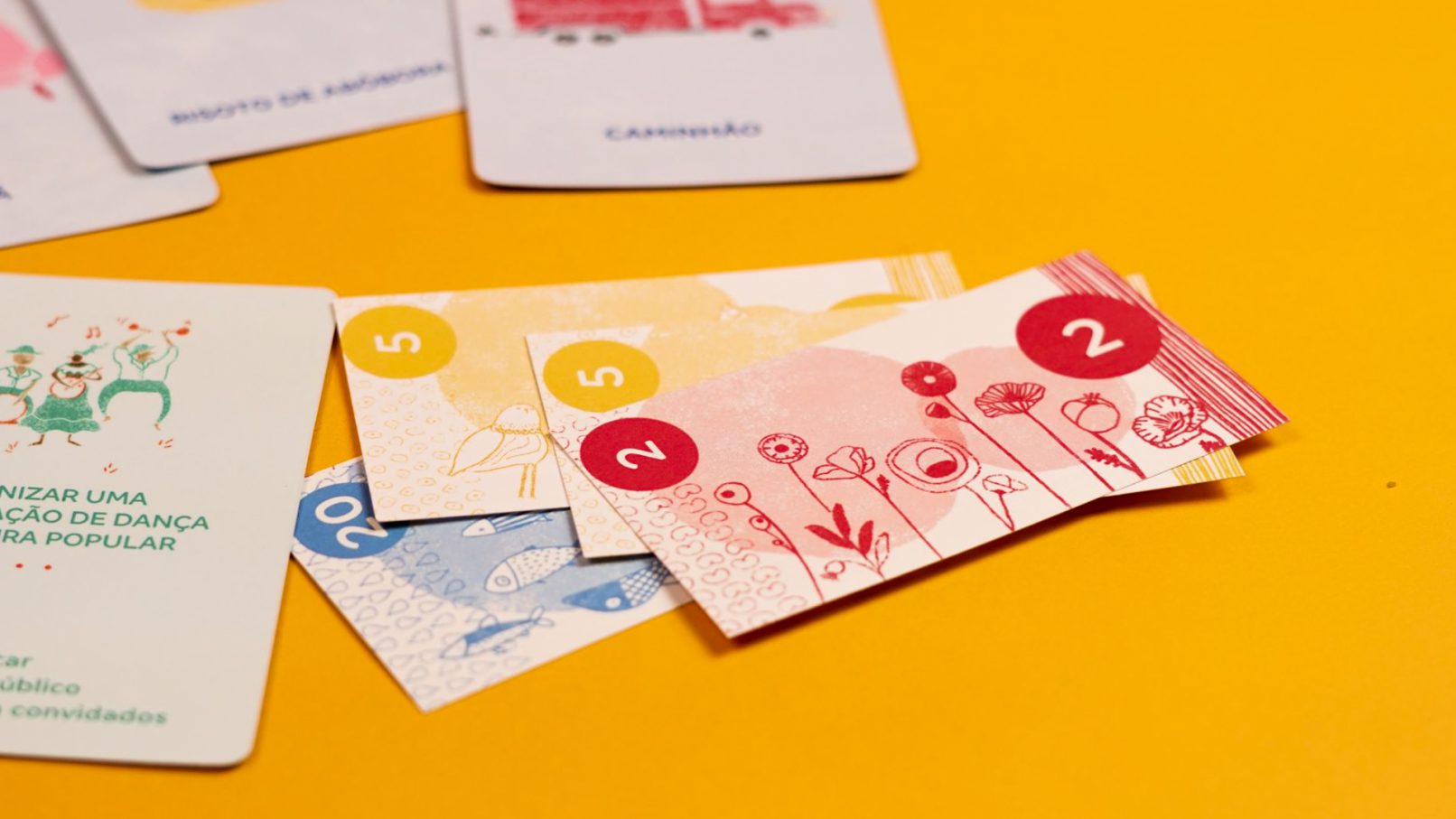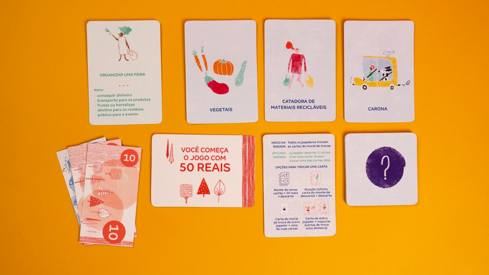 Desenvolvemos a pesquisa, mecânica, ilustrações, design e testes desse jogo em parceira com o JA.CA e o Programa CCBB Educativo Arte e Educação. O jogo foi pensado como ferramenta para as equipes do educativo dos CCBBs conversarem com as pessoas sobre a maneira com a qual nos relacionamos com o dinheiro, com a cidade e com as outras pessoas.